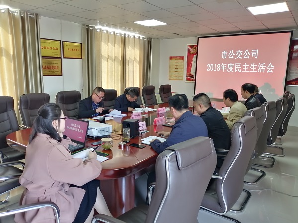 2019年3月18日,市公交公司召開(kāi)了“以強(qiáng)化創(chuàng)新理論武裝,樹牢‘四個(gè)意識(shí)’,堅(jiān)定‘四個(gè)自信’,勇于擔(dān)當(dāng)作為,以求真務(wù)實(shí)作風(fēng)堅(jiān)決把中央決策部署落到實(shí)處”為主題的民主生活會(huì)。黨委書記、董事長(zhǎng)張曉強(qiáng)主持會(huì)議,市公交公司全體領(lǐng)導(dǎo)班子和黨委委員參會(huì)。市國(guó)資委監(jiān)事會(huì)主席李世吉、副科級(jí)監(jiān)事羅全利到會(huì)指導(dǎo)。