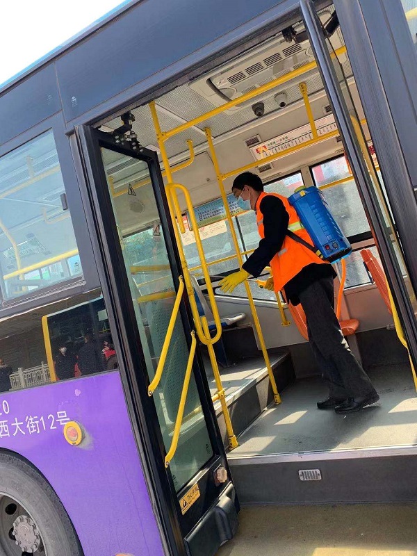 安排專人對公交站臺(tái)、車輛內(nèi)部進(jìn)行消殺滅菌工作